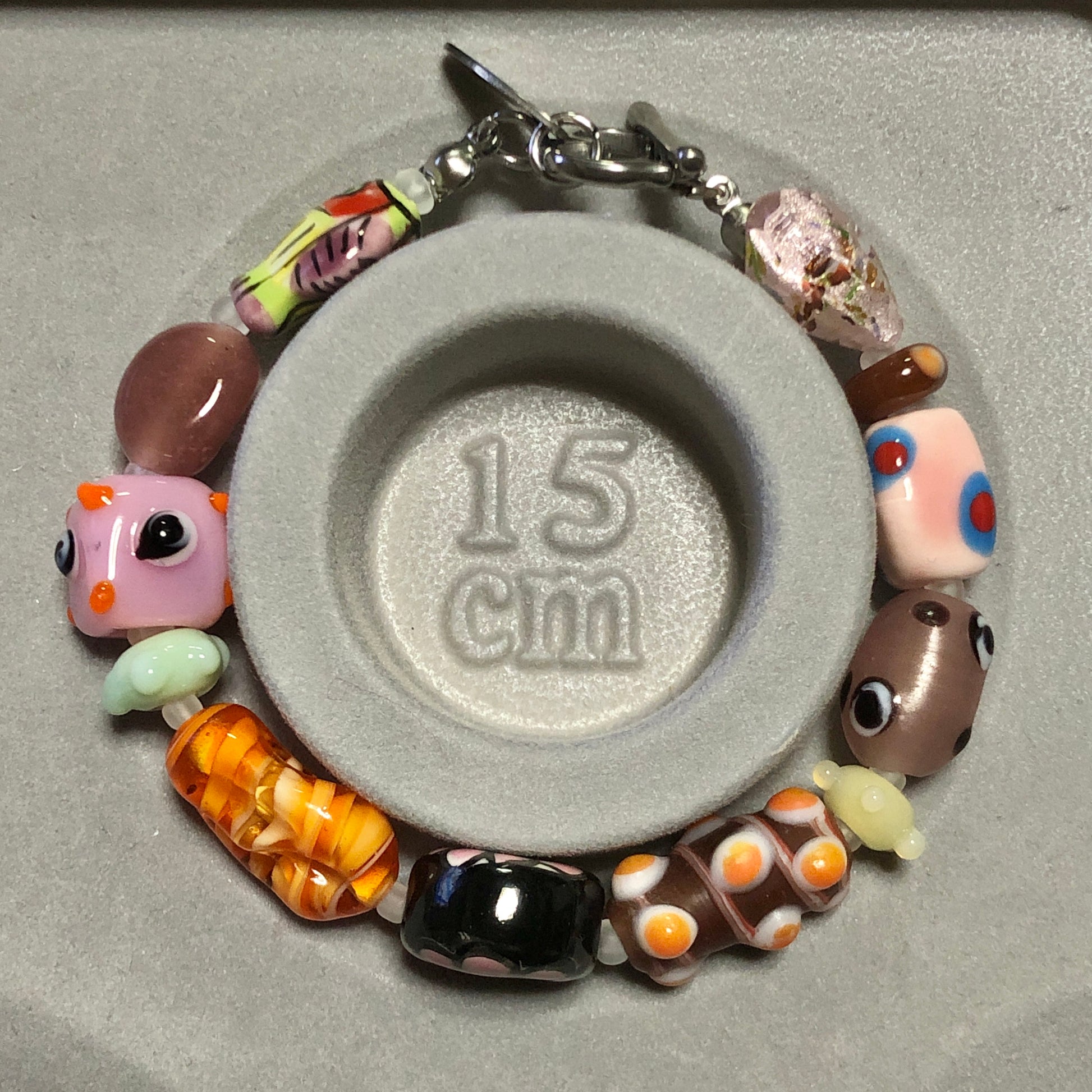 This is a handmade bracelet made by randomly combining glass and ceramic beads. We use a lot of glass beads made by hand one by one. This is characterized by a slightly distorted construction.
