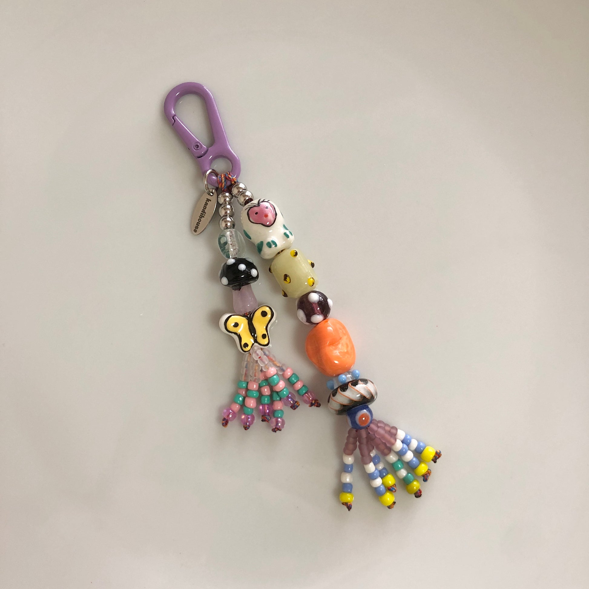 可愛いモチーフの陶器・ガラスのビーズを使用した、バッグやポーチなど色々な所に付けて頂ける、一点物のビーズキーホルダーです。