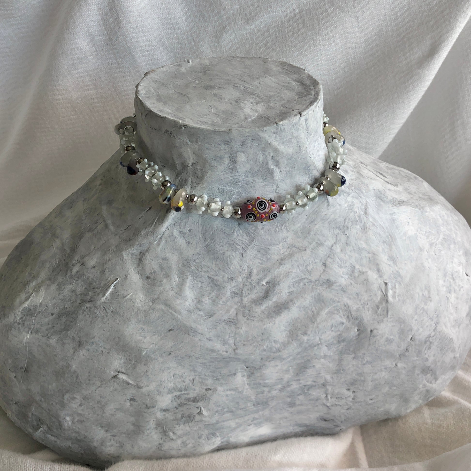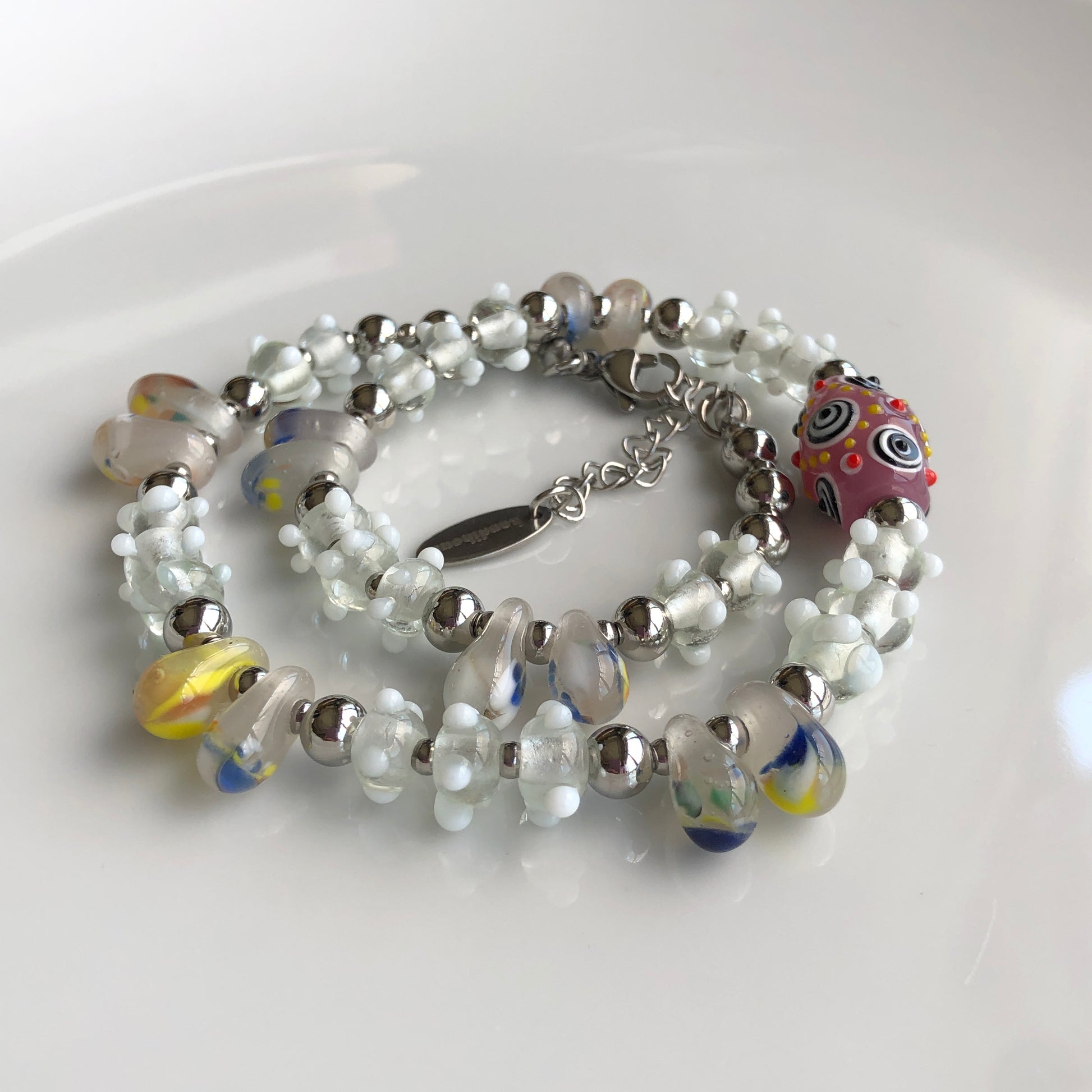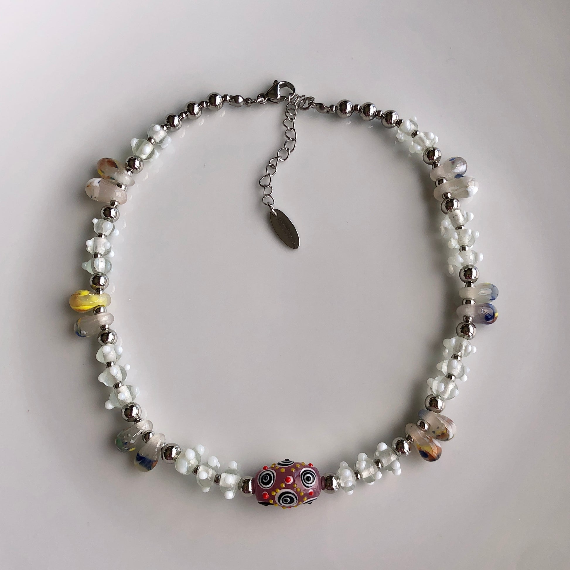 ガラスビーズ(とんぼ玉)とメタルビーズの一点物ハンドメイドネックレス♪