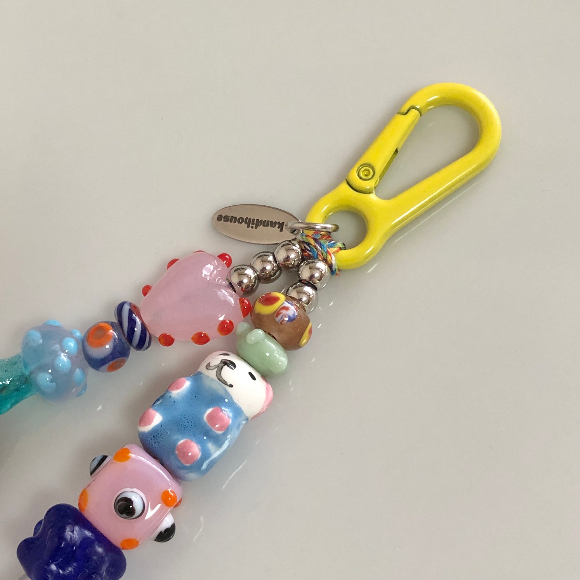 可愛いモチーフの陶器・ガラスのビーズを使用した、バッグやポーチなど色々な所に付けて頂ける、一点物のビーズキーホルダーです。
